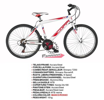 BICI JAUNTY 24 MTB UOMO 18V BIA/ROSS