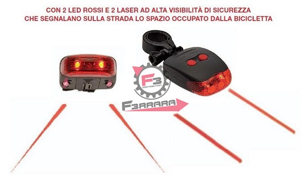 CICLO - 3 LED SCHEDA TECNICAFANALE POSTERIORE CON LASER SECURITYA 3 funzioniA 3 super leds a luce rossaA 2 leds laser che segnalano sullastrada lo spazio occupato dallabicicletta.Batteria: tipo "AAA" -2 pz- incluseAPPLICAZIONI:Per ciclo